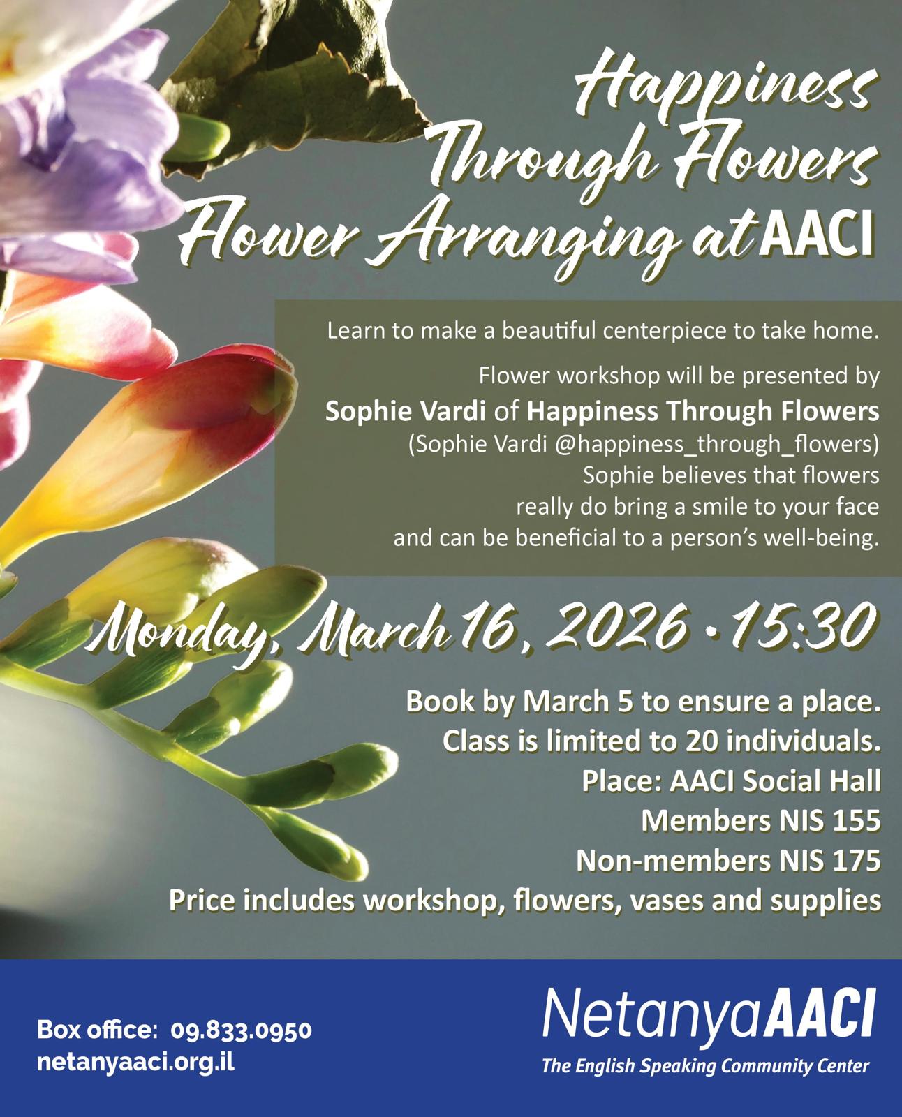 Netanya AACI 28 Shmuel Hanatziv, Netanya, Israel, Israel9:30-12:30 Thursday 26 March
